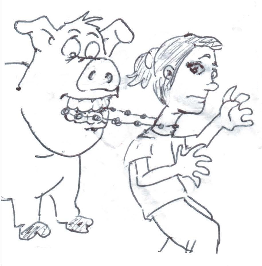 His niece, Beka, is obsessed with piggies and constantly requests that he draw pictures of piggies eating things. I spared you the picture of a piggie eating a man's ear (really just because she scribbled all over it).